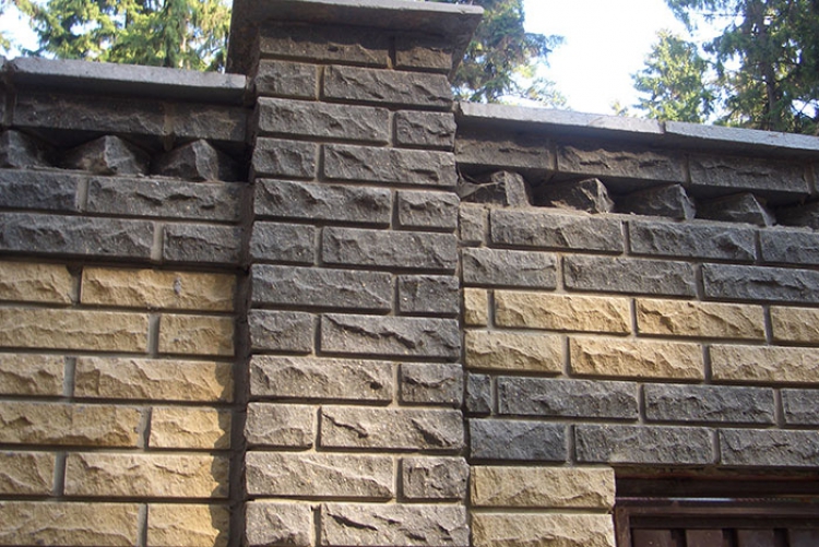 Рваный кирпич делают из полнотелых заготовок, подвергая их определенной обработке. Чтобы получился узор, их полностью разрубают или делают по краям сколы. Для этого используют специальные станки. На самом деле, это тот же кирпич, но с гладкими внутренними гранями и внешней рельефной поверхностью. Чтобы выкладывать углы, используют кирпичи, в которых сразу несколько рваных краев.